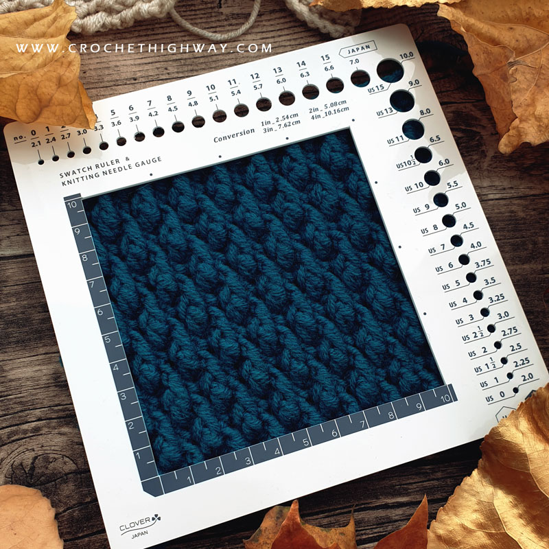 When gauge swatching, always crochet a swatch bigger than 10×10 cm (4×4″) — the larger the swatch, the more accurate your results! You can also get an idea of the drape your yarn will create based off of your gauge swatch.