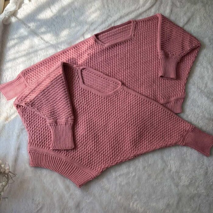 This batwing sweater will make you feel both comfortable, and effortlessly elegant. With loads of positive ease at the bust, it provides warmth and comfort, and the stretchy ribbing hugs your hips and wrists, keeping everything in place. All the while the alpine stitch pattern works its magic and embraces you in waves upon waves of three-dimensional texture.
