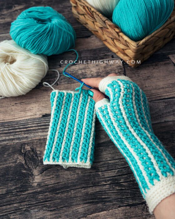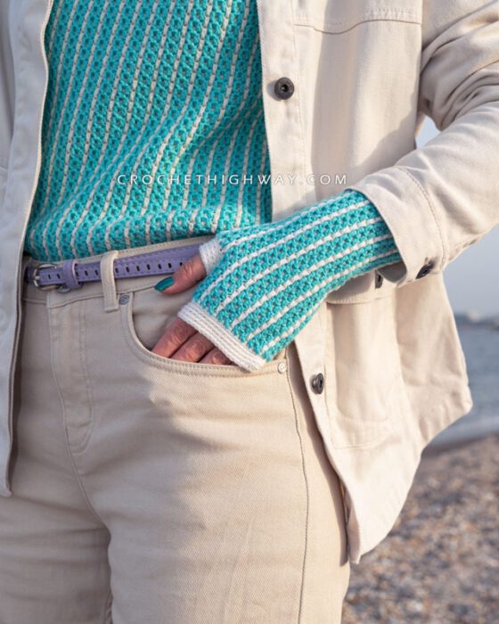 If you love the Kaleidoscope Fingerless Mittens, check out its sister patterns and make yourself a matching set! The Kaleidoscope Sweater, Beanie, and Cowl patterns have first been published in my book, Reversible Crochet Sweaters, and will soon be available as individual patterns in my webshop.