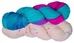 Main color (the “ones” on the WS): Punk Rock Unicorn Yarns Soul DK (85% Superwash Virgin Merino Wool, 15% Nylon; 241 yds / 220 m per 100 g ball) in color Cold Fusion