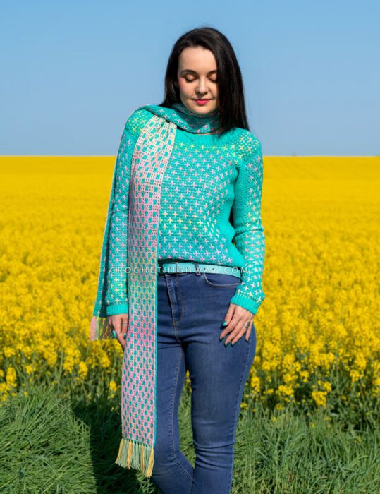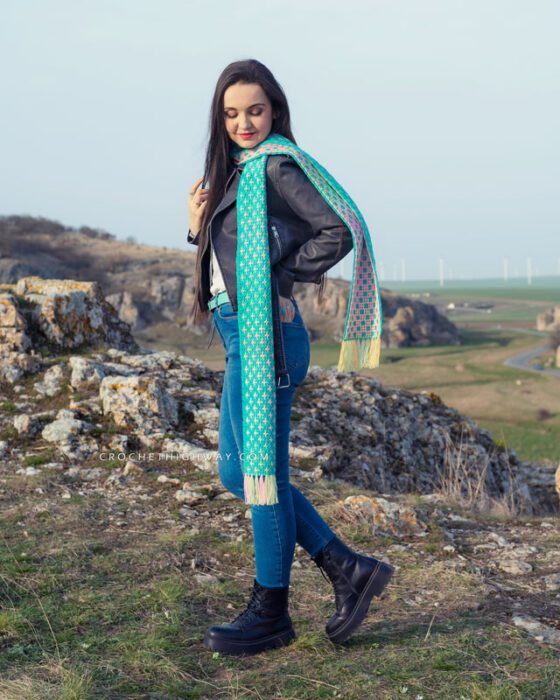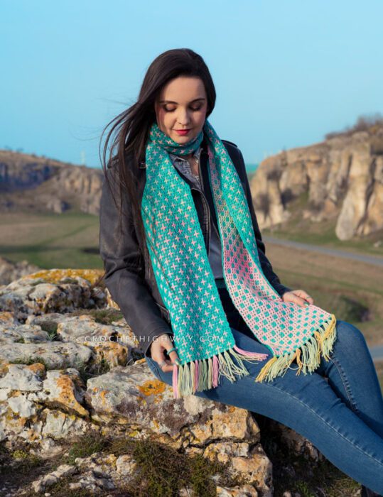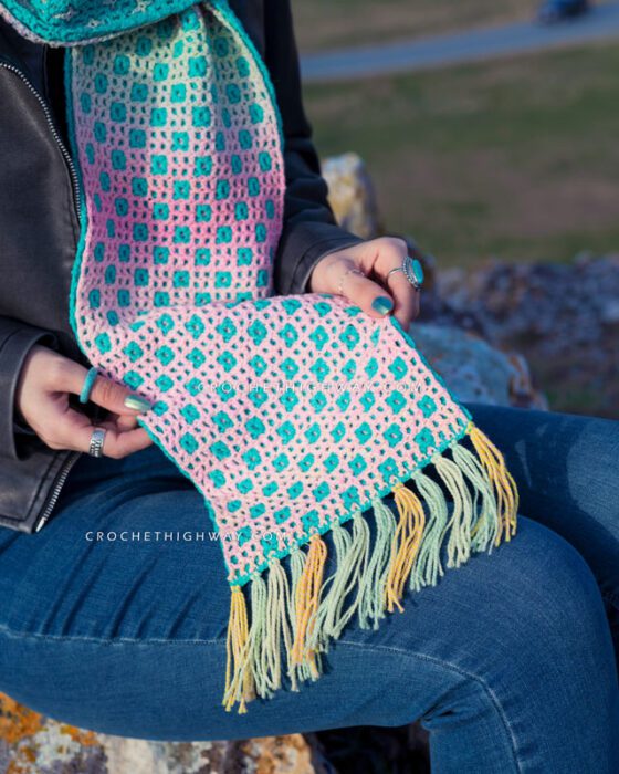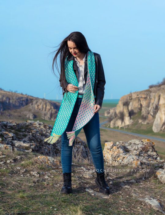 Dress it up, wear it casually, or pair it with the matching Tic Tac Toe Sweater Lite for the ultimate coordinated look. Whether you’re new to interlocking crochet or already “hooked”, this scarf is proof that simple shapes can deliver extraordinary results, and that every wardrobe deserves a little reversible crochet magic!