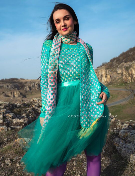 This interlocking crochet pattern can be found exclusively in my book, Reversible Crochet Sweaters (US publication date: November 4th, 2025). Grab your copy of the book today through my webshop or anywhere else books are sold!